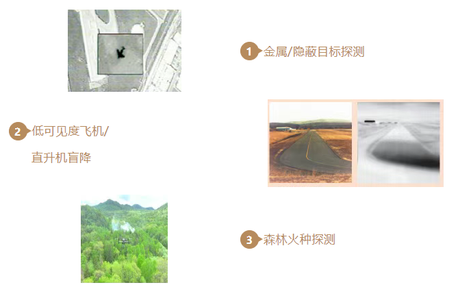 本目標輻射特性測試系統包含地基、空基及無人機等多種載平臺,可實現Ka 、W等多頻段、V/H雙極化輻射特性的高精度探測及快速成像,可用于隱身目標探測、目標輻射特性評估、森林防火、低可見度環境下的飛機起降導航等應用領域。