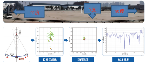 可獲得不同俯視角下目標(biāo)周向雷達(dá)散射截面(RCS)以及高分辨散射熱點分布成像。